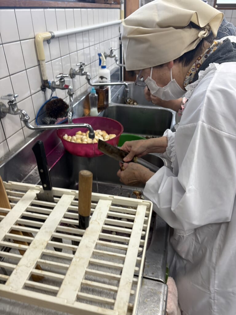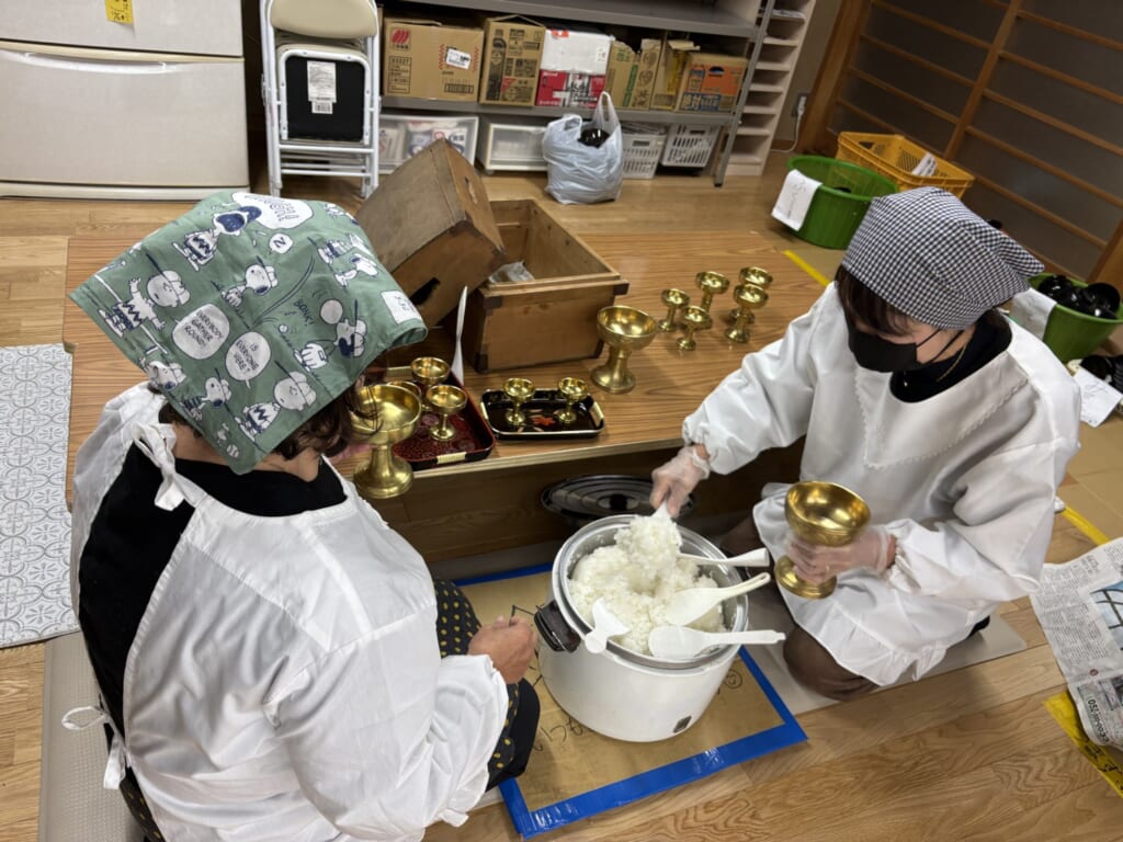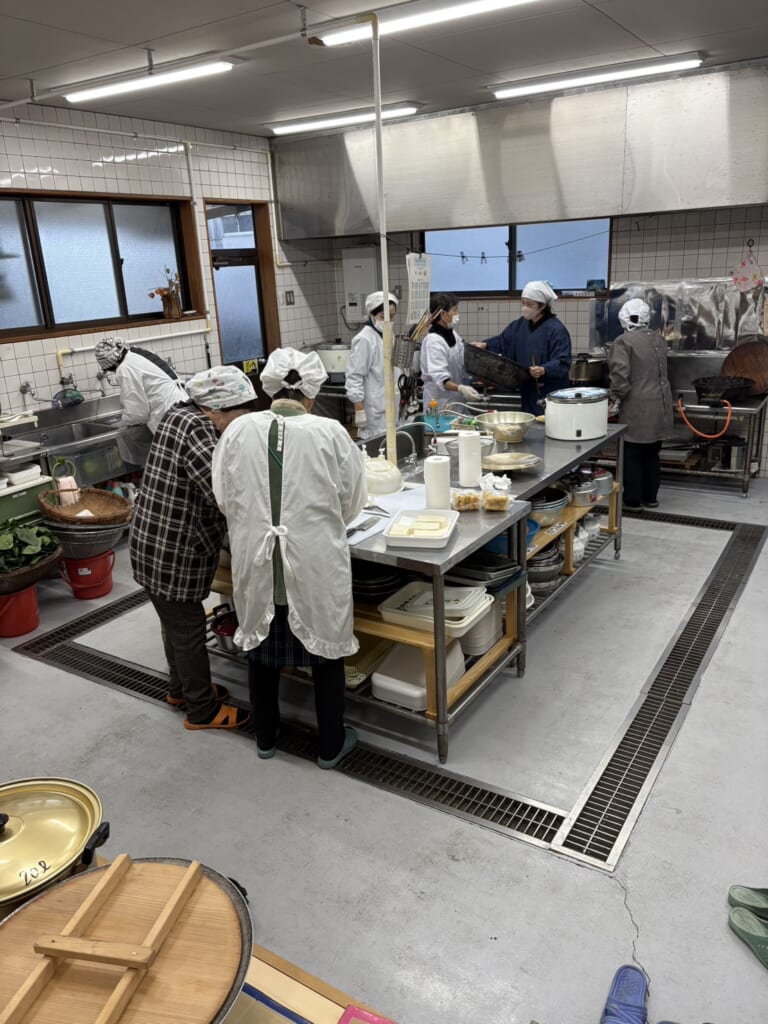 10時半から開始される御斎に向けて、末守・川西・八幡・下東野地区の皆さんが腕を振るって前日より仕込みして下さっていました。