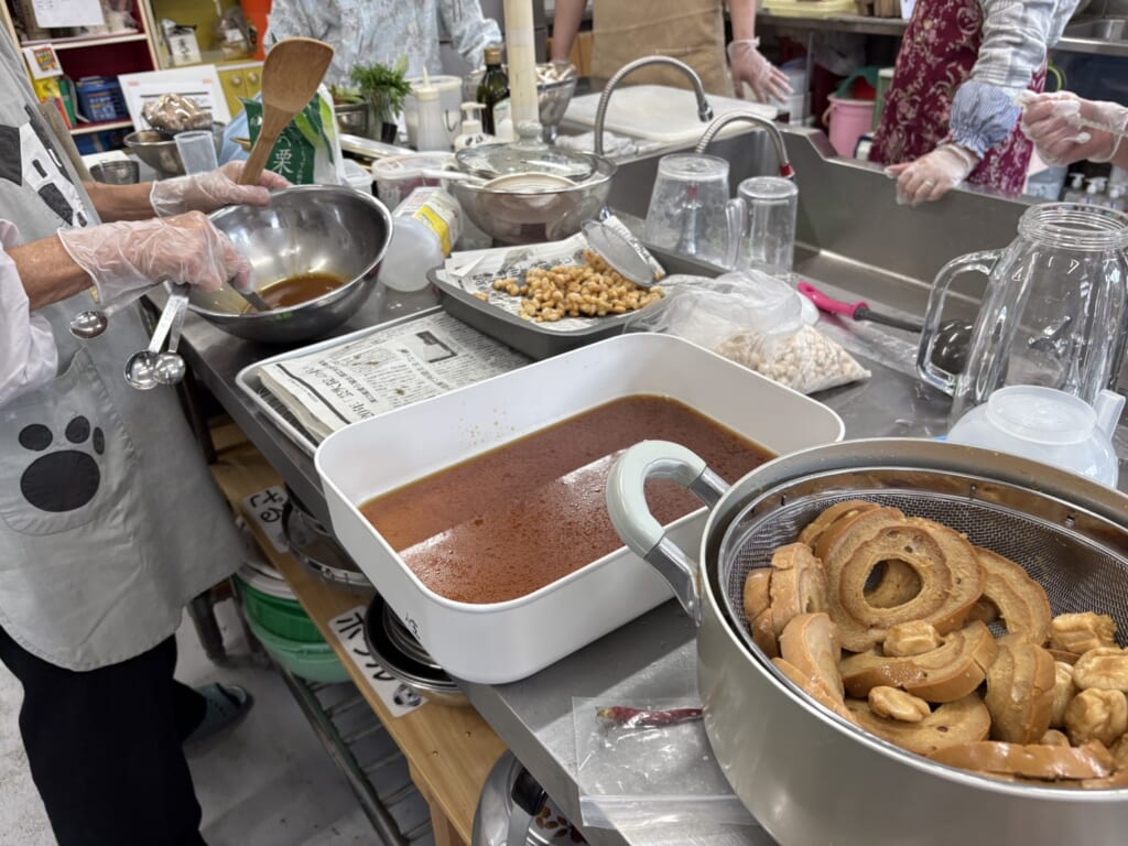 お隣では甘辛揚げ大豆が仕込み中です